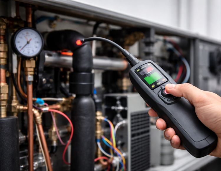 Kältemittel-Lecksuche wird zur Schlüsseltechnologie für Effizienz, Sicherheit und Klimaschutz bei Wärmepumpen.